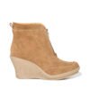 Botín Viola Brisa color miel, elaborado en cuero carnaza, diseño casual con finas costuras y cremallera frontal en tono dorado. Posee punta semi redonda y collarín delgado. Forrada en textil con suela TR Tacon PLAYA.